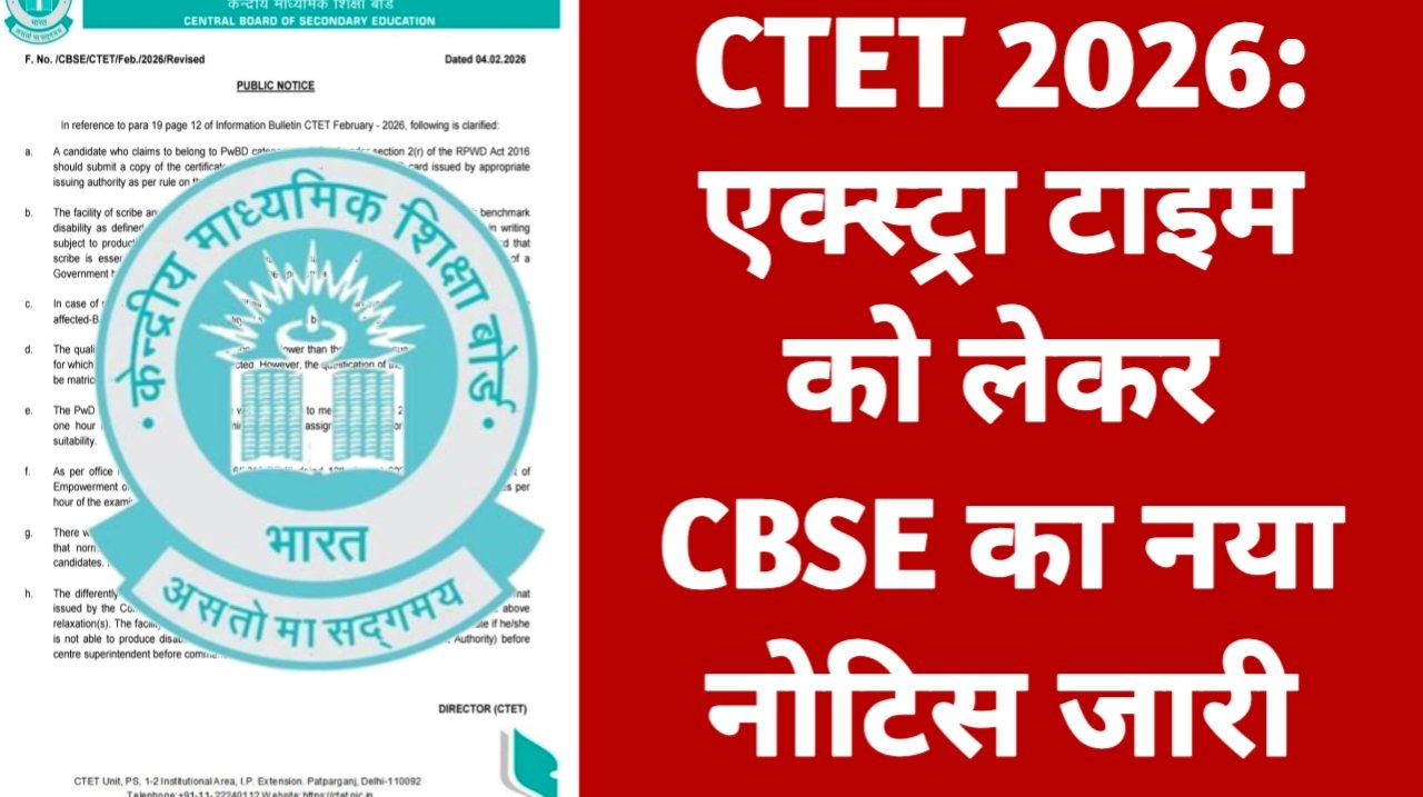 CTET परीक्षा से पहले नया नोटिस जारी, अतिरिक्त समय और दस्तावेज पर नया नियम CBSE Releases Important CTET 2026 Notice