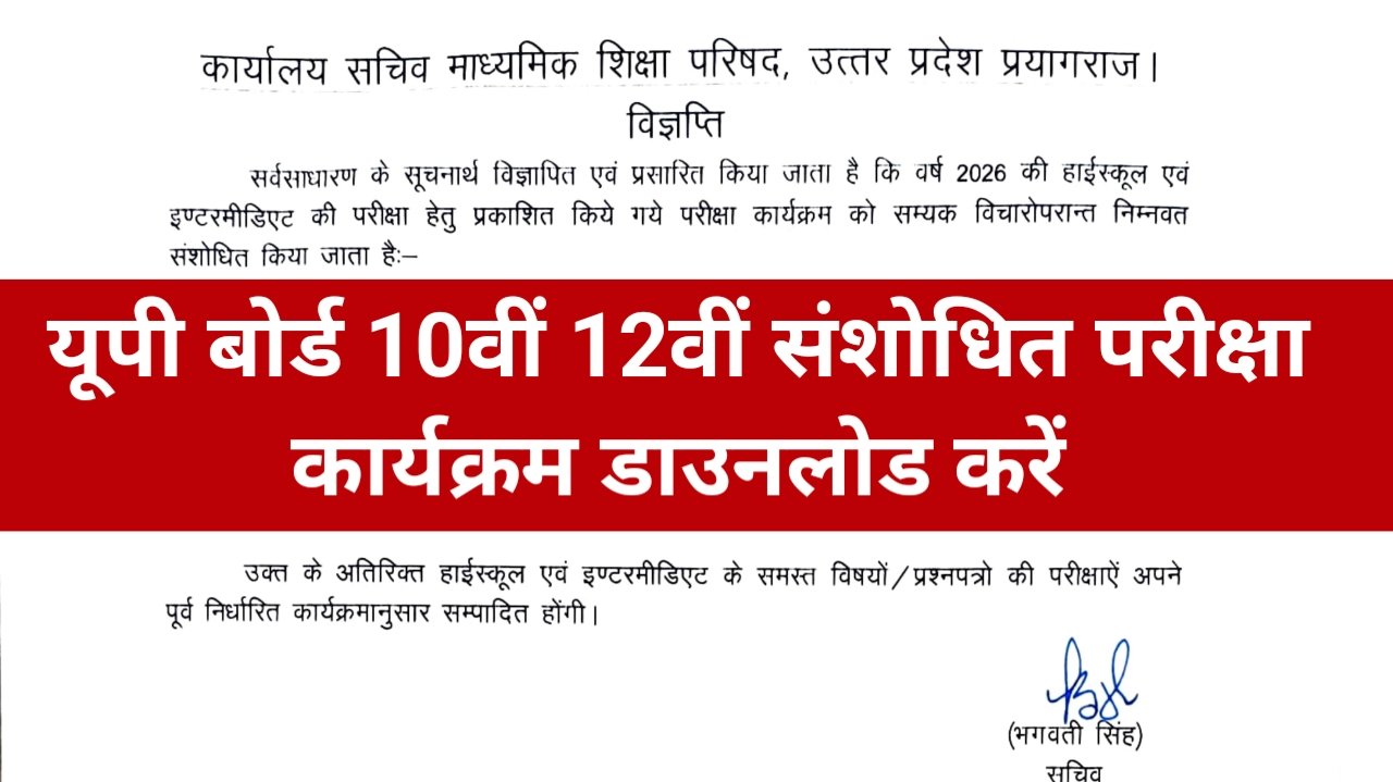 UP Board Exam Time Table 2026: यूपी बोर्ड 10वीं 12वीं संशोधित परीक्षा कार्यक्रम डाउनलोड करें
